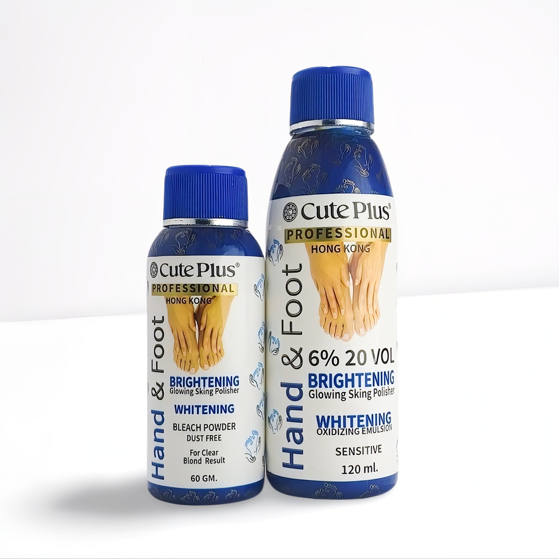 Cute Plus Hand & Foot Brightening Bleach Kit | Dust Free Powder + Vol 20 Emulsion for Sensitive Skin