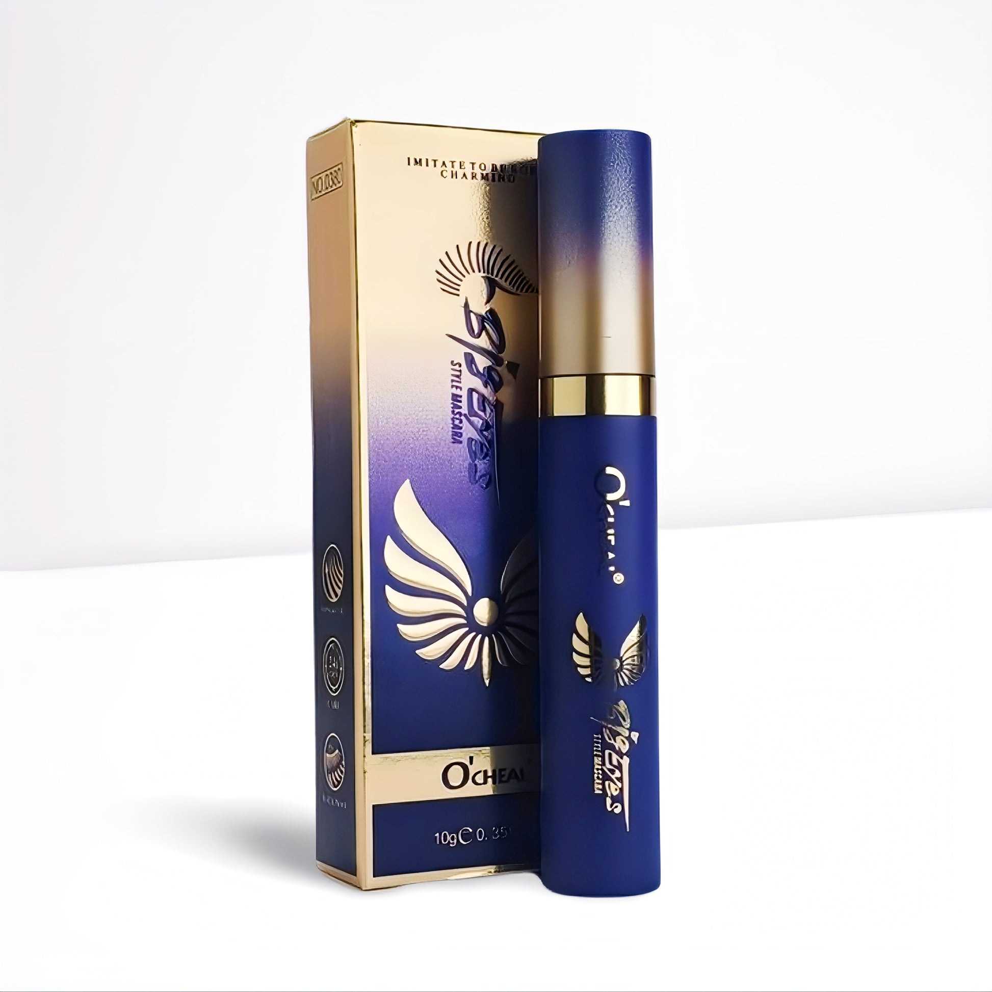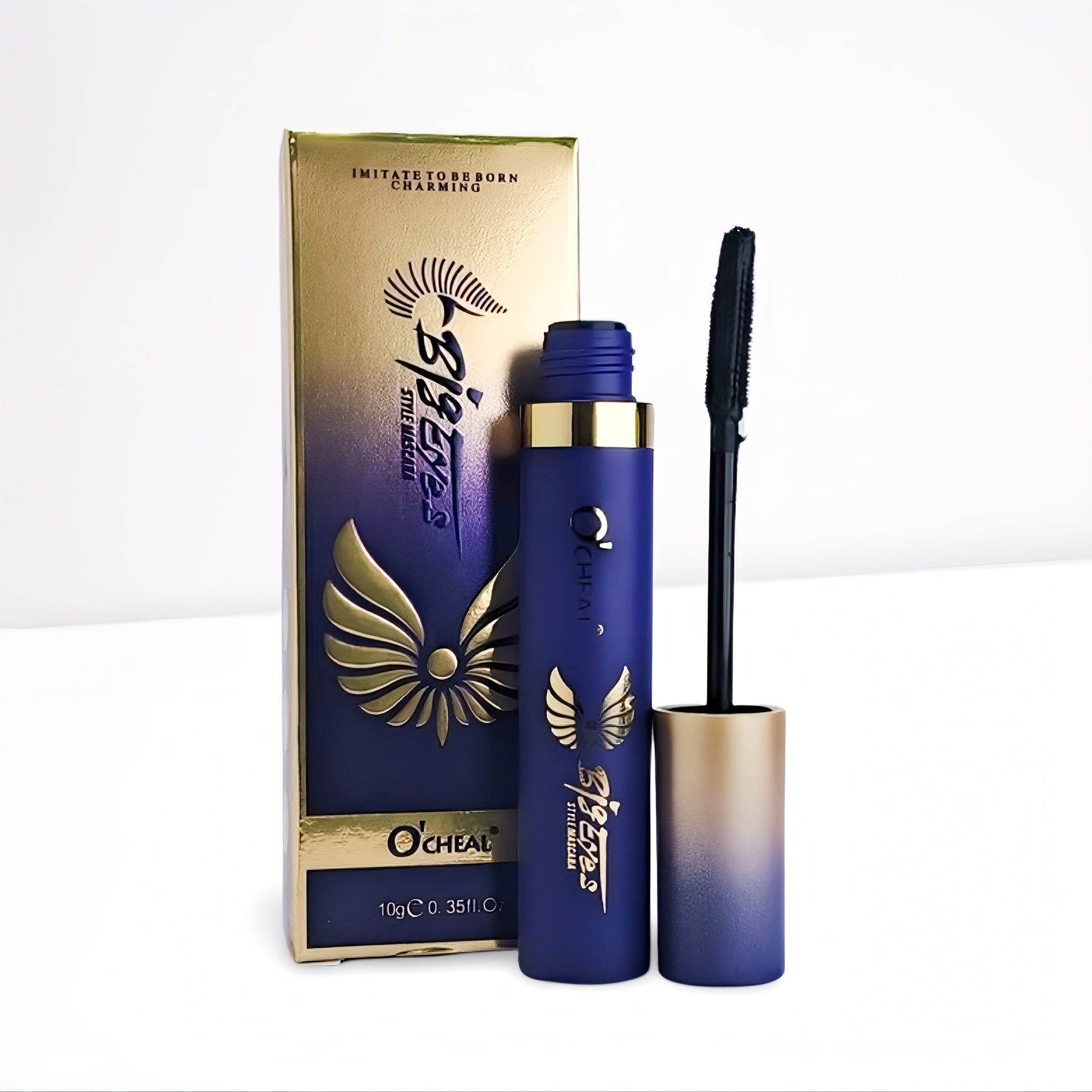 Elevate your eye game with the O'CHEAL Big Eyes Style Mascara, an intense, jet-black formula designed to give your lashes the captivating appearance of "charming wings." Housed in a luxurious royal blue and gold casing, this mascara is your key to achieving dramatic volume, striking length, and a powerful curl retention that lasts all day.